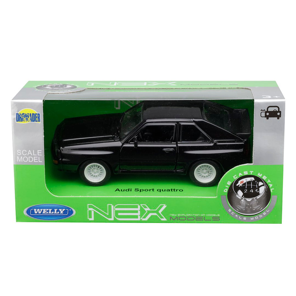 Az Audi Sport Quattro fekete színben érhető el, ami eleganciát és stílust kölcsönöz a modellnek. Az ajtók nyitottak, lehetővé téve a belső tér megtekintését, ami különleges élményt nyújt a gyűjtőknek és a fiataloknak egyaránt. A játék biztonságos, hiszen a termék rendelkezik az európai CE minőségi és biztonsági tanúsítvánnyal.