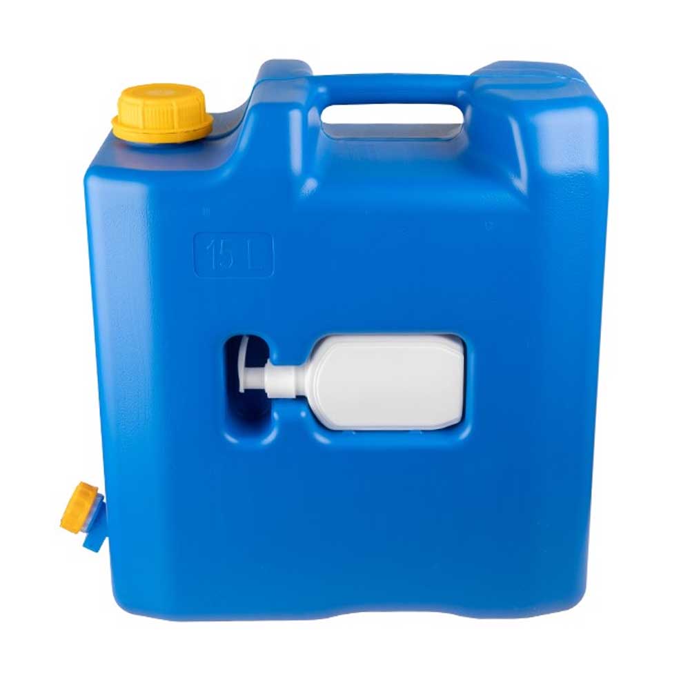 A 15 literes víztartály műanyag csappal sokoldalúan használható kézmosó vagy fertőtlenítőszer-adagolóként. Ideális megoldás kempingezéshez, kültéri eseményekhez, autós kirándulásokhoz vagy munkahelyi higiéniai célokra. A tartós műanyag kialakítás biztosítja a higiénikus, könnyen tisztítható használatot, a praktikus csap pedig pontos adagolást tesz lehetővé.