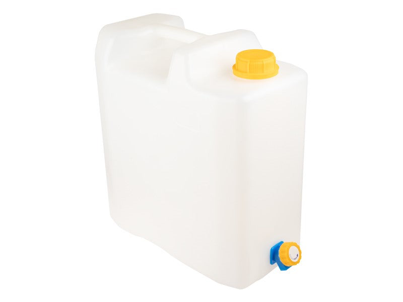 A 15 literes kanna műanyag szeleppel, ivóvízzel jóváhagyott, ideális választás mindazok számára, akik praktikus és megbízható víztárolási megoldást keresnek. Ez a kanna könnyen kezelhető, így a víz tárolása és szállítása egyszerűvé válik, emellett hosszú élettartama garantálja a tartósságot, amely a mindennapi használat során is megállja a helyét.