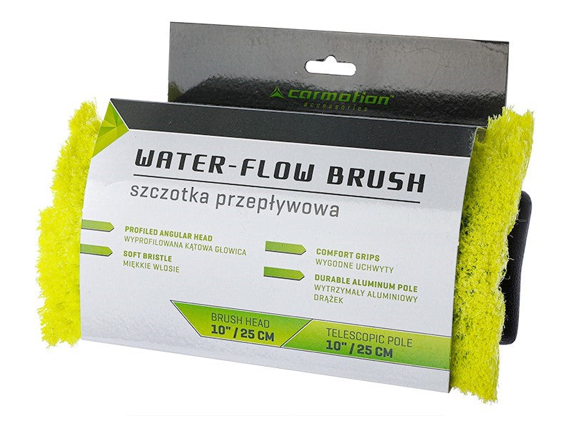 A 25 cm / 10" ferde vízáramú kefe 110 - 170 cm-es teleszkópos fogantyúval és szeleppel ideális megoldás a járművek hatékony tisztításához. Kiváló minősége és egyszerű használata révén megbízható társ a mindennapi autóápolás során, legyen szó személygépkocsikról, furgonokról vagy teherautókról.