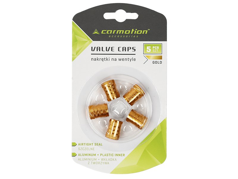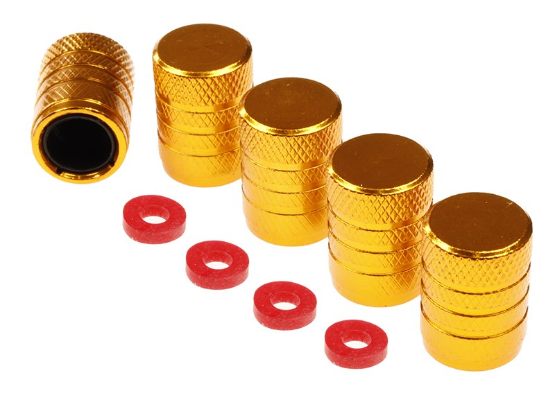 Alumínium szelepsapkák műanyag menetes betéttel, 5 db, arany színben