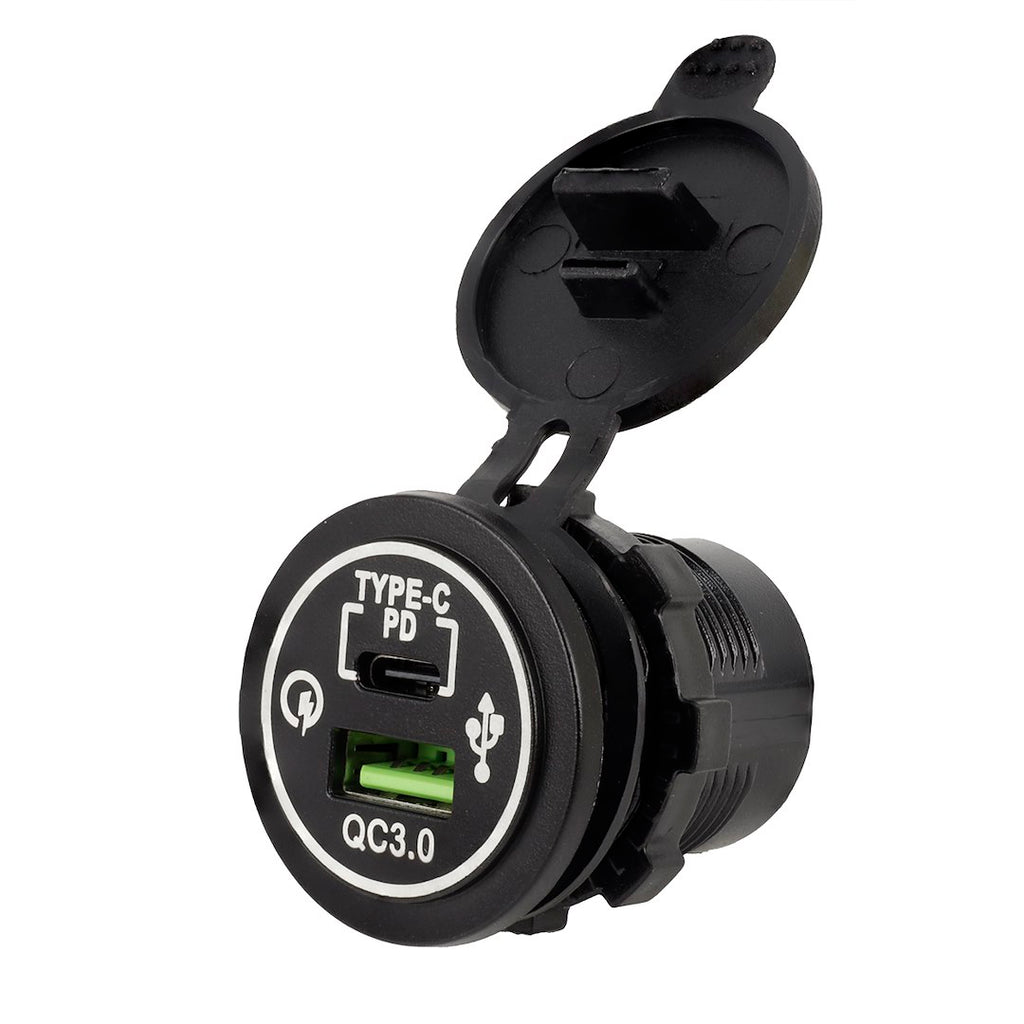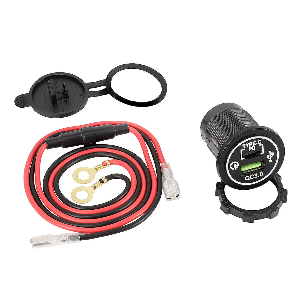 Beépített USB-C PD 30W + USB QC3.0 18W töltő + 60cm-es kábelek, 12/24V-os tápellátás