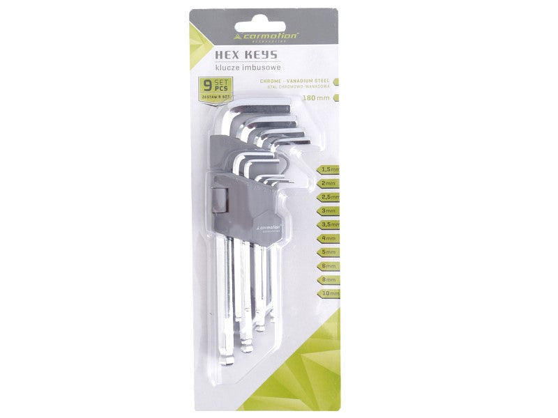 Gömbölyű, 180mm-es hatlapos kulcsok, 1.5 - 10mm méret, 9 db