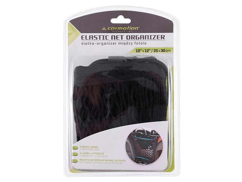 A Háló-rendező az ülések között, 25x30 cm, 2 zsebbel ideális megoldás, ha szeretné rendben tartani autóját. Kiváló minősége és megbízhatósága révén hosszú távú használatra tervezett, így a legjobb kiegészítője lehet az utazásoknak.