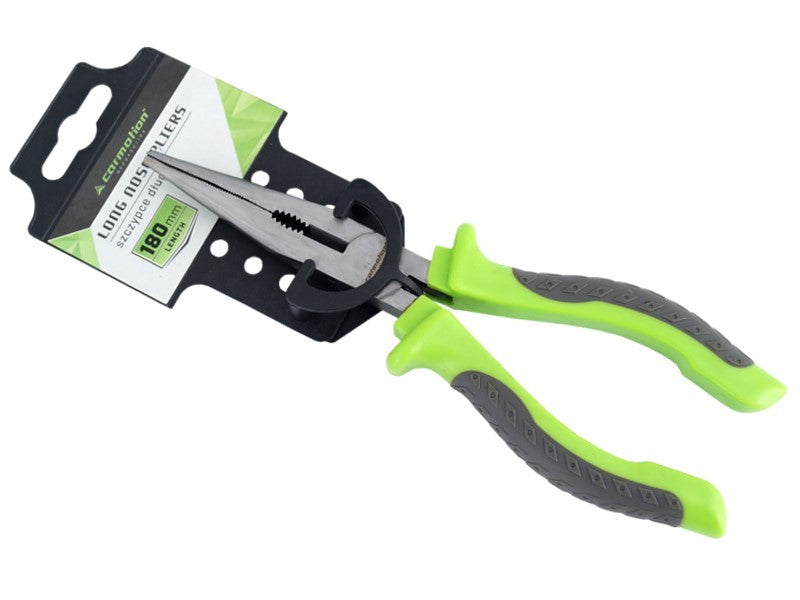 A Hosszú orrú fogó, 180 mm ideális választás, ha megbízható és tartós szerszámot keres az autó karbantartásához. Kiváló minősége és egyszerű használata révén könnyedén eltávolíthatók vele a nehezen elérhető helyeken lerakódott szennyeződések.