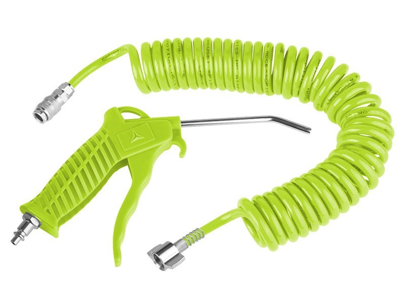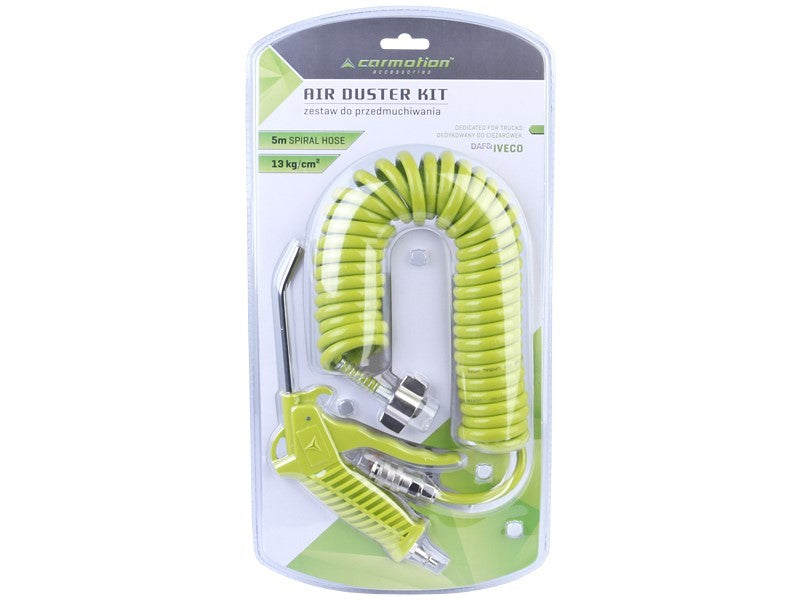 Az IVECO és DAF légfúvó pisztoly készlet egy kiváló minőségű eszköz, amely ideális választás a járművek tisztításához. A készlet segítségével gyorsan és hatékonyan eltávolítható a por és a szennyeződések az utastérből, valamint a nehezen hozzáférhető helyekről. A készlet tartalmaz egy 5 méteres spirális pneumatikus tömlőt, amely 8 mm átmérőjű, és maximális üzemi nyomása 13 atm.