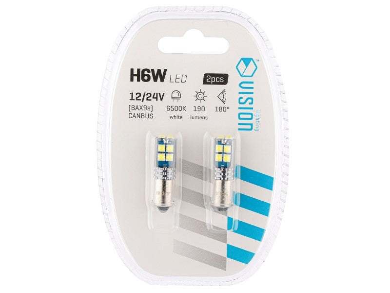 A Izzó VISION H6W BAX9s 12/24V 10x 3030 SMD LED, nem poláris, CANBUS, fehér, 2 db tökéletes megoldás, ha megbízható világítást keres autójába. A hagyományos izzókhoz képest kiemelkedő energiahatékonyságot és hosszabb élettartamot biztosít, így ideális választás a napi használat során.