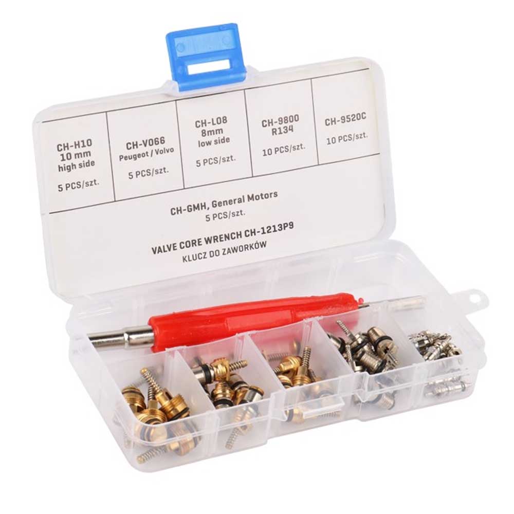 A klímaszelep készlet kulccsal ideális megoldás autóklíma-rendszerek karbantartásához és javításához. A 41 darabos szettben különböző típusú szelepek és tömítések találhatók, amelyek a legtöbb járműmodellhez illeszkednek. A mellékelt kulcs segítségével a szelepek gyorsan és egyszerűen cserélhetők. Kompakt dobozban, átláthatóan rendezve érkezik.