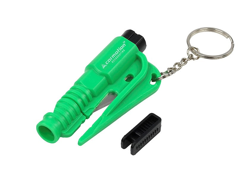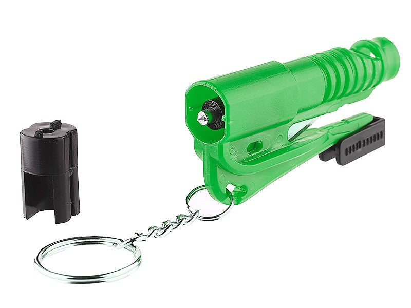 Kulcstartó biztonsági kalapáccsal és övkéssel