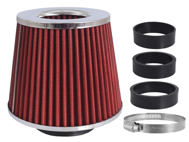 Légszűrő, kúpos 155x130x120 mm, piros / króm, adapterek: 60, 63, 70 mm