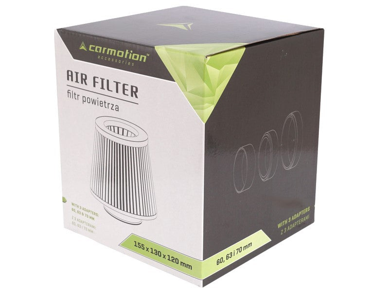 A Légszűrő, kúpos 155x130x120 mm, piros adapterek: 60, 63, 70 mm kiváló választás a megbízható autós kiegészítők közül. A szűrő kiváló minőségű anyagokból készült, és nagy teljesítményt nyújt a motor védelme érdekében, biztosítva a tiszta levegőt a motor számára.