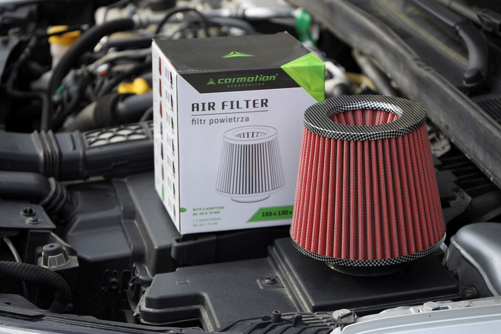 Válassza a Légszűrőt, kúpos 155x130x120 mm,piros/szén adapterekkel, hogy autója teljesítménye és légminősége mindig optimális legyen!