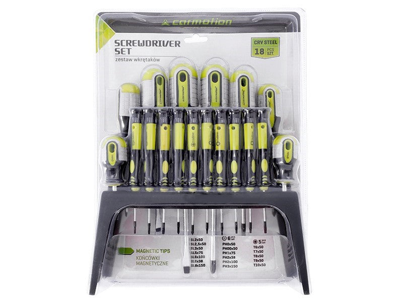 A Mágneses csavarhúzó tartóval, 18 db kiváló minőségű szerszámkészlet, amely ideális megoldást nyújt a gyors és kényelmes munkavégzéshez. Az eszközök praktikus elhelyezése és könnyű használata lehetővé teszi, hogy bármikor kéznél legyenek a szükséges szerszámok, így időt takaríthat meg a munkafolyamat során.
