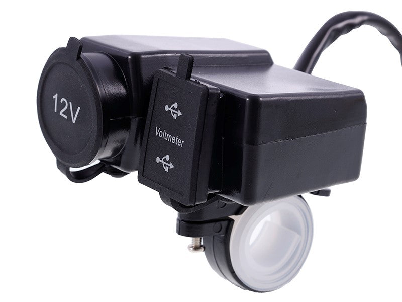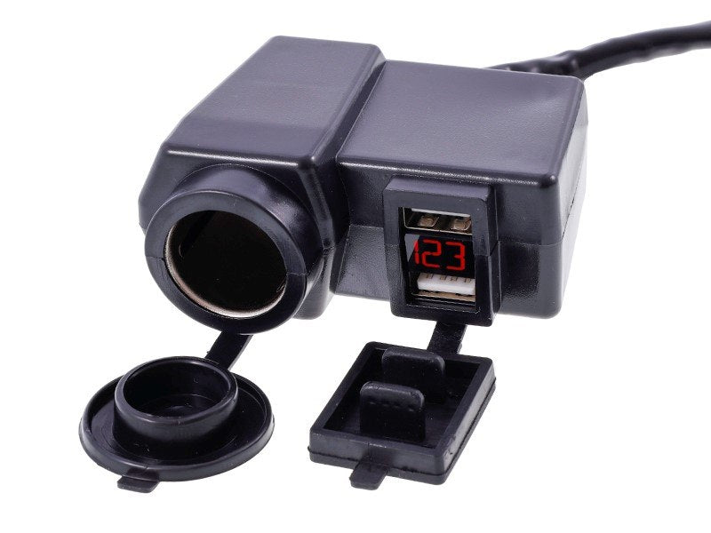 Motorkerékpár töltő 2xUSB 4.2A feszültségmérővel és EURO szivargyújtó aljzattal