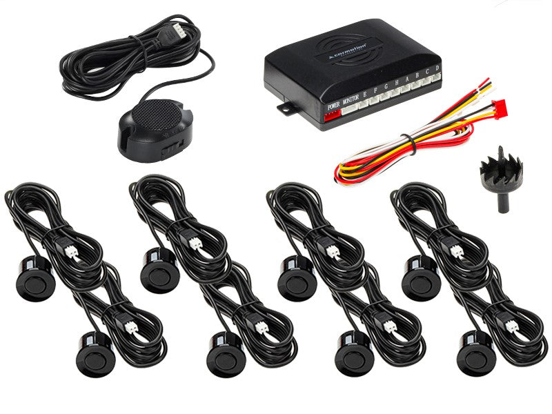 A Parkolási asszisztens rendszer hangszóróval, 8 fekete érzékelővel - elöl és hátul ideális megoldás, ha szeretné növelni autója biztonságát és kényelmét parkolás közben. A rendszer megbízhatóan működik, és segít elkerülni a baleseteket, miközben egyszerűsíti a parkolási folyamatot.