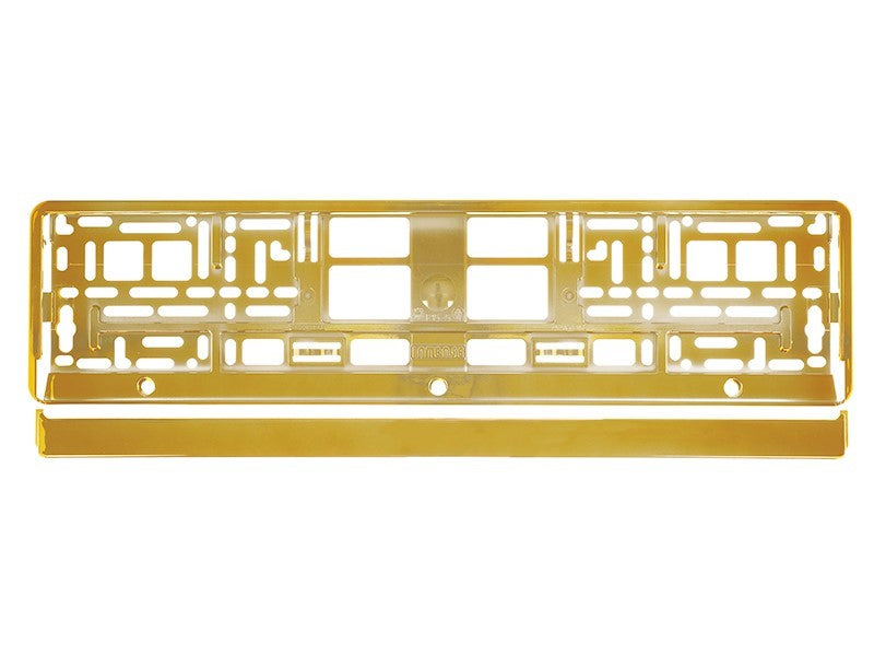 A Rendszámtábla keret, fémezett, arany egy megbízható és tartós kiegészítő, amely tökéletes választás az autók számára. Kiváló minősége és egyszerű használata biztosítja, hogy hosszú távon is megőrzi funkcióját és esztétikáját.