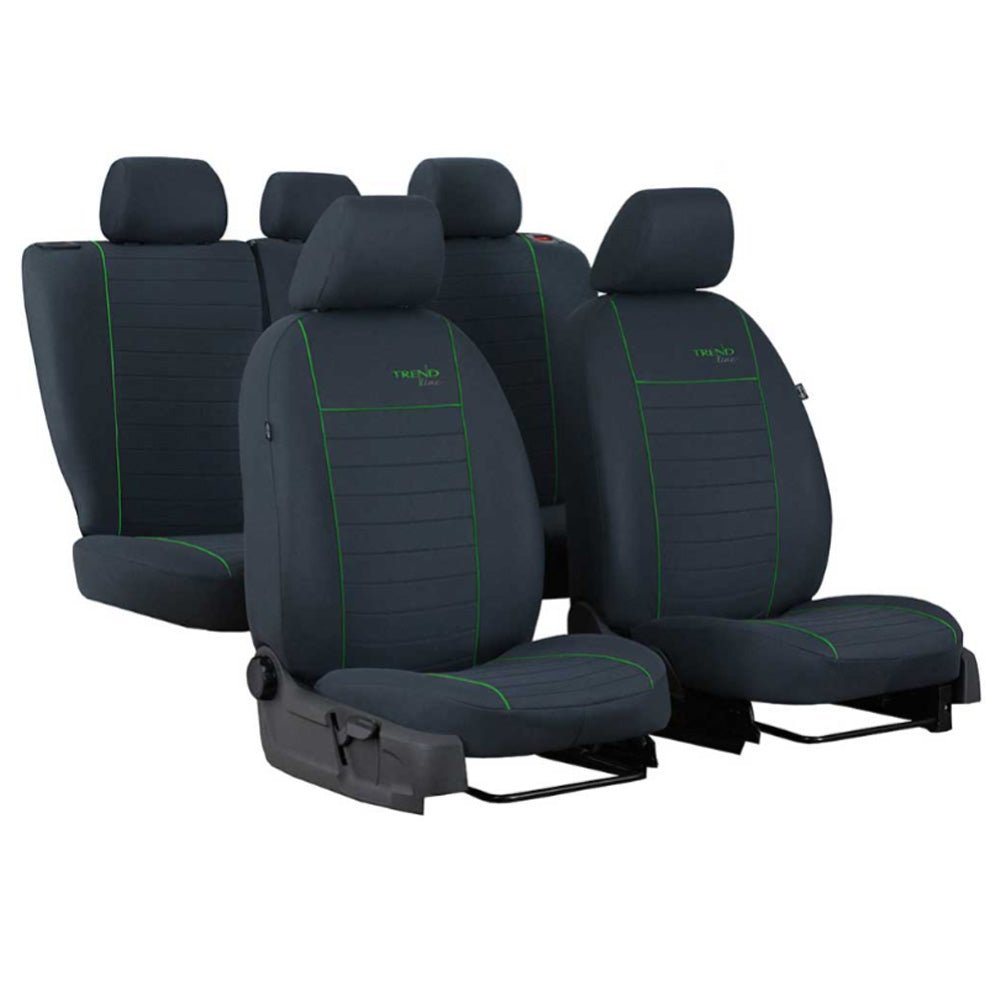Skoda Octavia III (2013-2020) méretpontos Trend Line üléshuzat zöld színben. Az üléshuzat méretpontos, tehát kizárólag az adott típushoz megfelelő. Ennek célja, hogy megőrizze az ülések eredeti funkcionalitását és formáját, az első és hátsó üléseknél egyaránt.