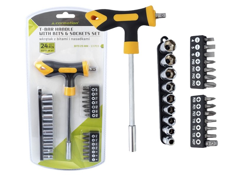 T24-es csavarhúzó, adapter, 13 bit és 9 foglalat tartozék