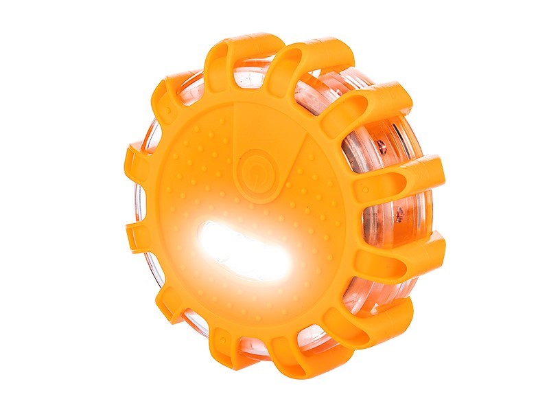 Vészjelző lámpa 12 LED + 3 LED, mágnessel és kampóval szerelve, tápegység 3x AAA, narancssárga színben.