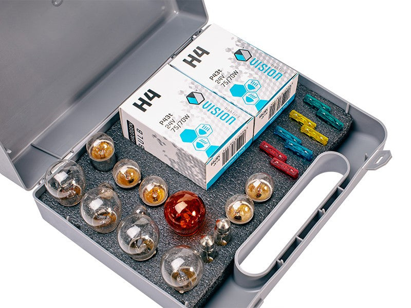 A VISION 2x H4 24V 75/70W + 22 elemű izzó pótlólagos készlet egy kiváló megoldás, ha tartós és megbízható fényforrást keres autójához. Az izzók ideálisak a jármű belsejének és a rendszámtáblák megvilágítására, így biztosítva a megfelelő láthatóságot és biztonságot a közlekedés során.
