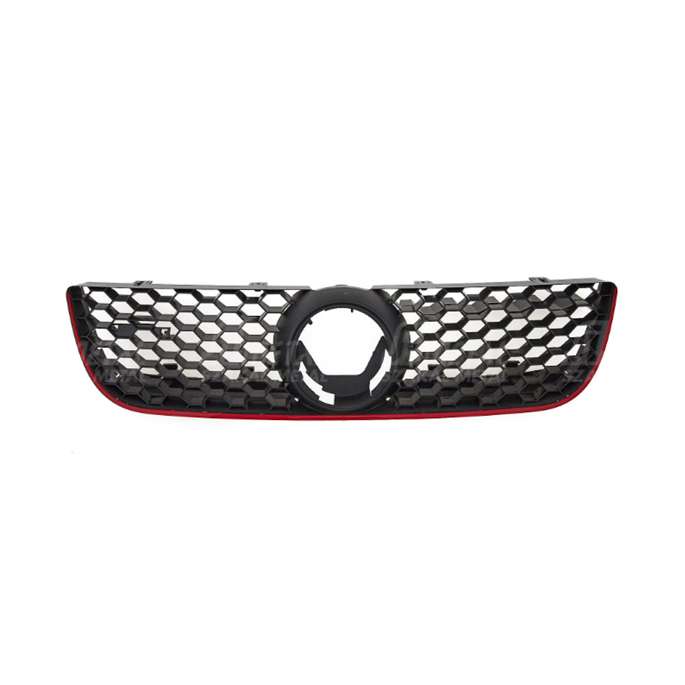 Új, VW hűtőrács, fekete, piros és króm színű. Beépítés helye: elöl, a fényszórók között. Méretpontos, könnyen felszerelhető.